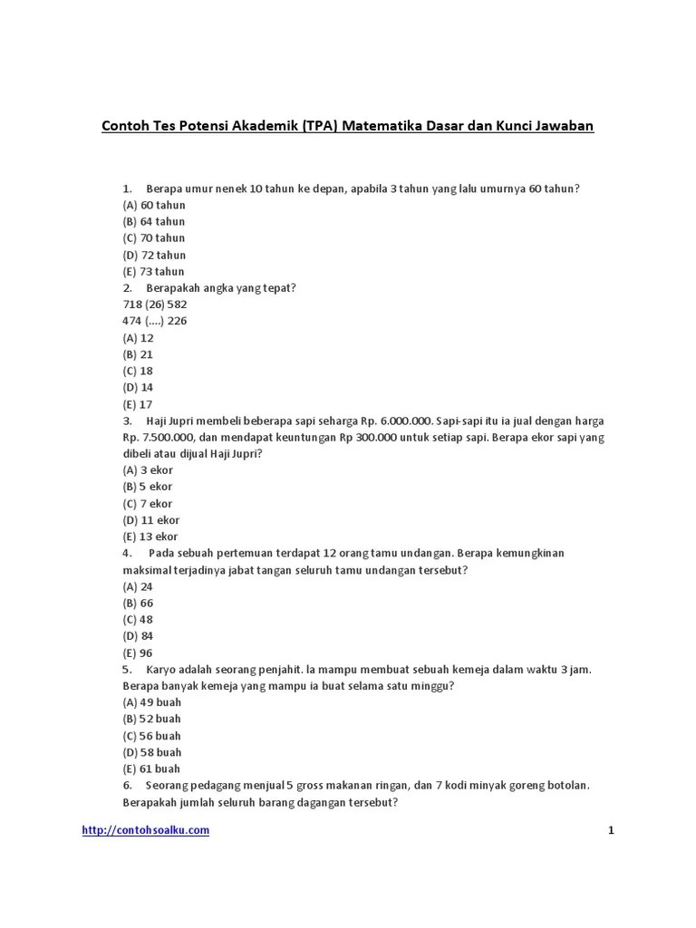 Tes Kemampuan Umum Dan Kunci Jawaban Pdf / Soal Tes Potensi Akademik S2 Dan Kunci Jawaban Pdf - Contoh soal dan jawaban tes masuk rs muhammadiyah guru ilmu sosial. Update cpns 2019 contoh soal latihan dan kunci jawaban skd 2020. tes skd dimulai sejak senin 27 01 2020 dan diikuti 45 instansi pemerintah dan akan berlangsung hingga februari 2020. Soal psikotes dan jawabannya 2012 contoh tes toefl pdf soal dan. Intinya dengan memahami pola mengerjakan soal psikotes gambar khususnya adalah pada deret gambar maka anda akan bisa melakukan analisa pada soal psikotes. Soal tes potensi akademik s2 dan kunci jawabancontoh soal psikotes tes potensi akademik aritmatika beserta kunci jawaban dan tips nya oleh awam bicara juli 25 2018 1 komentar psikotes tpa tes potensi akademi adalah salah satu tes yang bertujuan untuk mengukur kemampuan seseorang di bidang akademik umum.