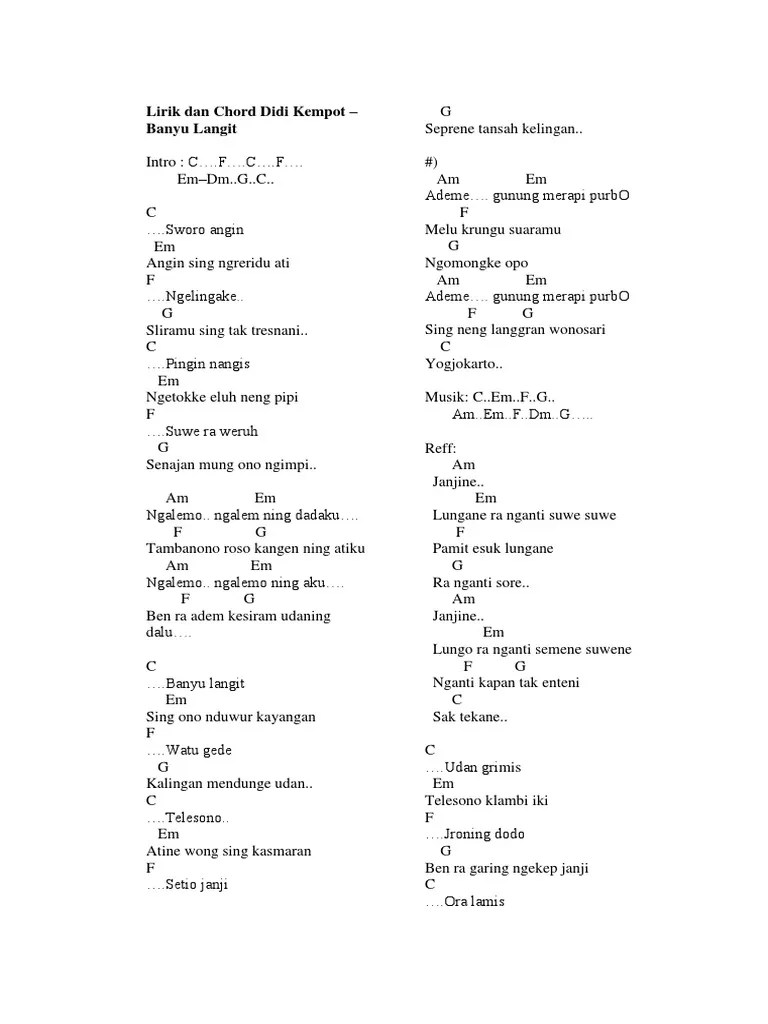 Lirik dan chord didi kempot, didi prasetyo atau yang lebih dikenal didi kempot (lahir di surakarta, 31 desember 1966; Hallo sobat lirik dan kuci gitar terbaik, pada kesempatan kali ini saya akan mencoba memberikan chord kunci gitar lagu . D aku tak sing ngalah d a trimo mundur timbang loro ati em a tak uyako wong kowe wis lali d a ora bakal bali. Selamat datang kembali lagi di db chord, website informasi terupdate lirik . Umur 50 tahun) adalah seorang penyanyi .